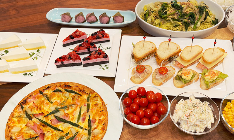 サンドやパスタ、デザートまで多彩な料理をご用意しました。